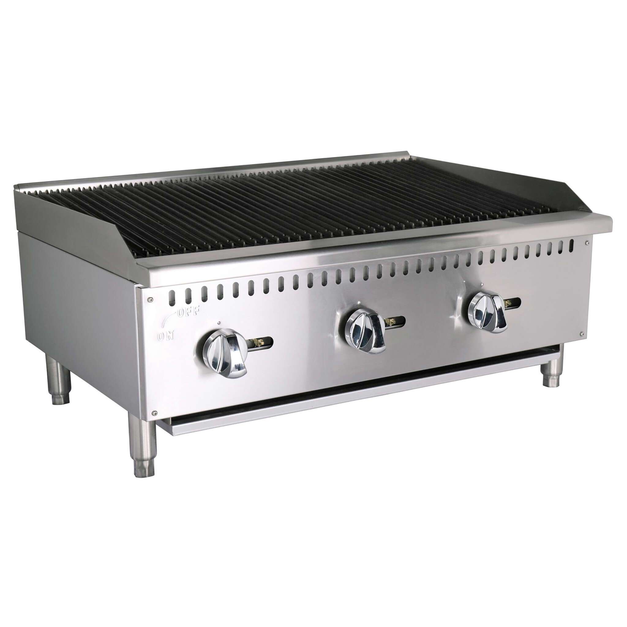 Efficiency Meets Culinary Mastery with the Adcraft - Admiral Craft Equipment Gas Charbroiler. Designed for commercial restaurant use, this high-quality charbroiler is a game-changer in the kitchen. With its model number BDECTC-36/NG, this gas charbroiler offers exceptional performance and reliability. The 3 burners provide a total output of 90,000 BTUs, ensuring fast and even cooking of your delicious dishes. Its stainless steel construction guarantees durability and easy cleaning, while the adjustable grates allow for precise heat control. Whether you're grilling steaks, burgers, or vegetables, this charbroiler delivers mouthwatering results every time. With its efficiency and culinary mastery, this charbroiler is a must-have for any commercial restaurant looking to elevate their grilling game.