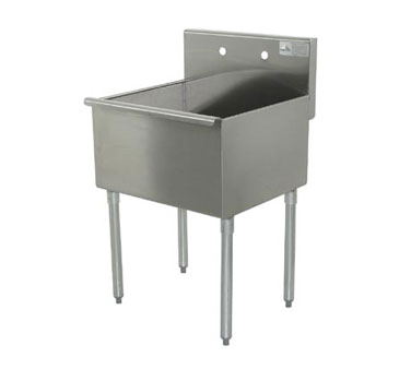 Fuel your passion for cooking with the Advance Tabco, 4-1-36 Sink, (1) One Compartment. This square corner scullery sink is designed to meet the demands of a busy commercial restaurant kitchen. The 36"W x 21"D front to-back x 14" deep sink compartment provides ample space for washing dishes, pots, and pans. The 8"H backsplash helps to keep the surrounding area clean and free from splashes. Made from 16 gauge 430 stainless steel, this sink is durable and resistant to corrosion, ensuring long-lasting performance in a commercial setting. The galvanized legs with plastic bullet feet provide stability and support, even in a high-traffic environment. The 1-1/2 IPS waste drain basket is included, making it easy to dispose of food waste. With its practical design and high-quality construction, the Advance Tabco, 4-1-36 Sink is the perfect addition to any commercial restaurant kitchen.