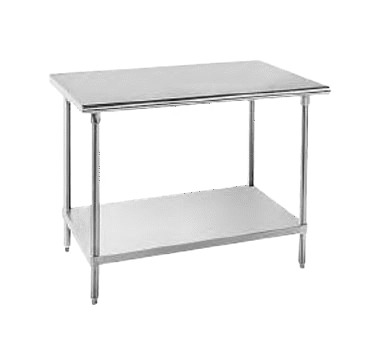 Boost your restaurant's performance with the Advance Tabco AG-364 Work Table. This durable and versatile work table is designed to enhance efficiency and productivity in any commercial kitchen. The 16 gauge 430 stainless steel top provides a sturdy and hygienic surface for food preparation, while the 18 gauge galvanized adjustable undershelf offers ample storage space for utensils, ingredients, and equipment. The galvanized legs with adjustable plastic bullet feet ensure stability and allow for easy leveling on uneven surfaces. NSF certified, this work table meets the highest standards of cleanliness and safety. Whether you need a reliable workstation for chopping vegetables, assembling ingredients, or plating dishes, the Advance Tabco AG-364 Work Table is the perfect addition to your restaurant. Invest in this high-quality work table and experience improved workflow and organization in your kitchen.