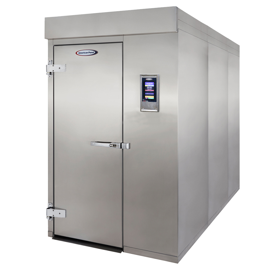 Introducing the American Panel Corporation AP20BC-3T Blast Chiller, Roll-In. Chill, freeze, and preserve excellence with this top-of-the-line commercial restaurant equipment. Designed to meet the needs of busy kitchens, this modular blast chiller accepts up to three trolleys, allowing for efficient and convenient food storage. With a chill capacity of 600 lbs. in just 90 minutes or 690 lbs. in 120 minutes, this chiller ensures rapid and consistent cooling, preserving the quality and flavor of your culinary creations. The 7" LCD touch screen controller with Quick Start and A La Carte functionality makes operation a breeze, while the stainless steel interior and exterior guarantee durability and easy cleaning. Whether you're a high-volume restaurant or a catering business, the American Panel Corporation AP20BC-3T Blast Chiller, Roll-In is the perfect addition to your kitchen arsenal. Upgrade your food preservation game and elevate your culinary offerings with this exceptional blast chiller.