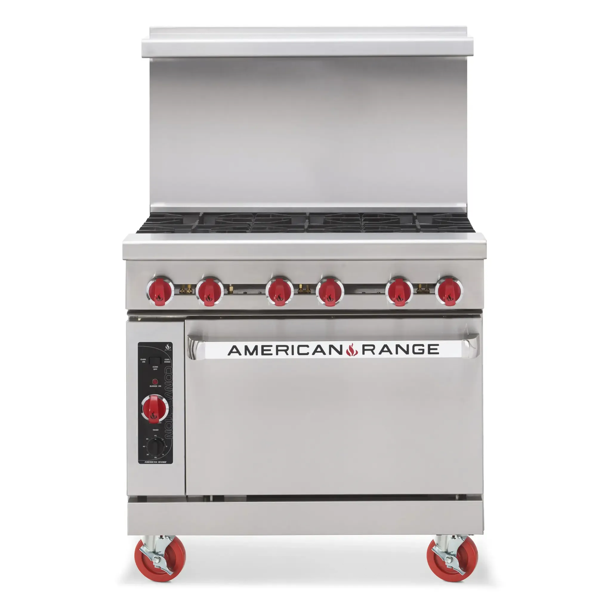 Quality gear for culinary innovation, the American Range AR-6 is the perfect addition to any commercial restaurant. This heavy-duty restaurant range is designed to meet the demands of a busy kitchen, with six 32,000 BTU open burners that provide precise heat control for all your cooking needs. The 36" gas range also features a spacious 26-1/2" standard oven, complete with one rack for versatile baking and roasting options. Made in the USA with stainless steel front, sides, and high shelf, this range not only looks sleek but is also built to last. The 6" chrome plated legs ensure stability and easy cleaning. With a total power output of 67.0kW and 227,000 BTU, this ETL-sanitation certified range delivers exceptional performance. Upgrade your kitchen with the American Range AR-6 and experience the difference in quality and efficiency.