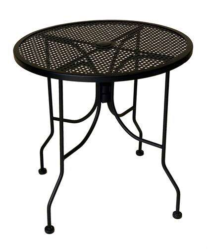 Boost your restaurant's appeal with the American Tables & Seating ALM36 Mesh Top Round Outdoor Table-P. This commercial-grade table is designed to enhance your outdoor dining area with its sleek and modern design. The mesh top allows for easy cleaning and prevents water from pooling, while the powder-coat black finish adds durability and resistance to the elements. With a standard height and a 36-inch diameter, this table provides ample space for guests to enjoy their meals comfortably. The umbrella hole allows for the addition of shade on sunny days, ensuring a pleasant dining experience for your customers. Elevate your outdoor dining space with the ALM36 Mesh Top Round Outdoor Table-P.
