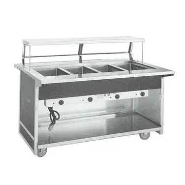 Invest in Durable Metalware with the Atlas Metal BLH-5-OT Serving Counter. Designed for commercial restaurant use, this hot food serving counter is a reliable addition to any kitchen. With five 12" x 20" hot food wells, it provides ample space to keep your dishes warm and ready to serve. The stainless steel 1" offset top and extruded aluminum frame ensure durability and longevity, even in high-traffic environments. The laminate front and end panels add a touch of elegance to the counter, making it a stylish choice for any establishment. The mobile modular design and 5" swivel casters, two of which have brakes, allow for easy maneuverability and stability. Whether you're running a buffet or a busy restaurant, the Atlas Metal BLH-5-OT Serving Counter is the perfect solution for keeping your hot food fresh and accessible.