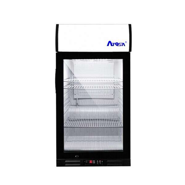 Boost functionality in your workspace with the Countertop Glass Door Merchandiser Cooler. Designed specifically for restaurant settings, this cooler is an essential addition to any food service operation. The sleek black exterior cabinet with a matching black door frame and a pristine white interior not only enhances the aesthetic appeal of your space but also ensures durability and ease of maintenance. The Countertop Glass Door Merchandiser Cooler utilizes environmentally friendly R600a refrigerant, making it a sustainable choice for your business. The foamed-in-place high-density polyurethane insulation ensures optimal temperature retention, maintaining your packaged foods and bottled beverages at a consistent temperature range of 33 F ' 38 F. This model features a double pane glass door with a recessed door handle and a standard door lock, providing both visibility and security for your products. Equipped with an electronic temperature controller, this cooler allows precise temperature management, ensuring your items are always stored at the ideal conditions. The pre-installed removable PVC coated wire shelves offer flexibility in organizing your inventory, while the magnetic door gasket ensures a positive door seal, maintaining the internal environment efficiently. The LED interior lighting illuminates the contents, making it easy for staff and customers to locate items quickly. Additionally, the leveling legs provide stability on any countertop surface. With a 5' cord and NEMA 5-15 plug standard, installation is straightforward and hassle-free. Enhance your restaurant' s efficiency and presentation with the Countertop Glass Door Merchandiser Cooler, a reliable and stylish solution for your refrigeration needs.