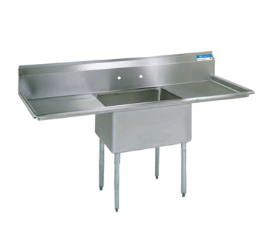 Ignite culinary passion with the BK Resources BKS-1-1620-12-18T Sink, (1) One Compartment. This high-quality sink is designed to meet the demands of a busy commercial restaurant. With its 16" wide x 20" front-to-back x 12" deep compartment, it provides ample space for washing dishes, utensils, and more. The sink also features two left and right 18" drainboards, allowing for efficient drying and organization. The 9" backsplash and 8" OC splash mount faucet holes ensure a clean and sanitary workspace. Made from durable 18/304 stainless steel, this sink is built to withstand the rigors of a commercial kitchen. The galvanized steel legs and adjustable high impact corrosion resistant feet provide stability and durability. NSF certified, this sink meets the highest standards of cleanliness and sanitation. Upgrade your restaurant's kitchen with the BK Resources BKS-1-1620-12-18T Sink, (1) One Compartment.