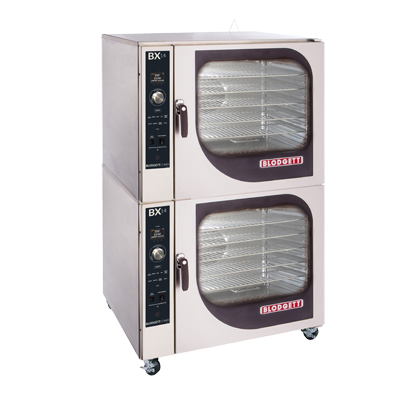 Achieve kitchen supremacy with the Blodgett BX-14E Double Combi Oven. This electric, boilerless oven is designed to meet the demands of a busy commercial restaurant. With a stacked configuration, it offers a generous capacity of (14) 12" x 20" full-size hotel pans or (7) 18" x 26" full-size sheet pans per compartment. The Steam-on-Demand and Vario Steam features ensure precise control over the cooking process, while the 4-speed fan ensures even heat distribution. The core temperature probe allows for accurate monitoring of food doneness. The glass door provides visibility into the cooking chamber, and the 13-position rack glides make it easy to adjust the shelves. With (5) wire shelves, a retractable hose reel, and 4" low profile casters, this oven offers convenience and mobility. With a total power of 38.0 kW and NSF and cETLus certifications, the Blodgett BX-14E Double Combi Oven is a reliable and efficient choice for any commercial kitchen.