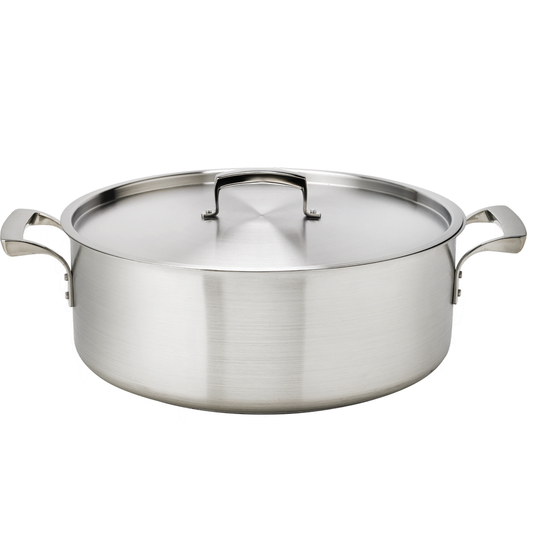 Set standards with a variety of equipment with Browne Foodservice's Cookware - THERMALLOY Stainless. Model number 5724029 is a 30qt stainless steel brazier that is NSF certified, ensuring its durability and safety for commercial restaurant use. This brazier is designed to withstand the demands of a busy kitchen, making it perfect for braising, stewing, and simmering large quantities of food. With its thermal conductivity, this cookware ensures even heat distribution, preventing hot spots and allowing for precise cooking. The 30qt capacity provides ample space for cooking large batches, making it ideal for restaurants that cater to a high volume of customers. Elevate your culinary creations with this reliable and efficient brazier.