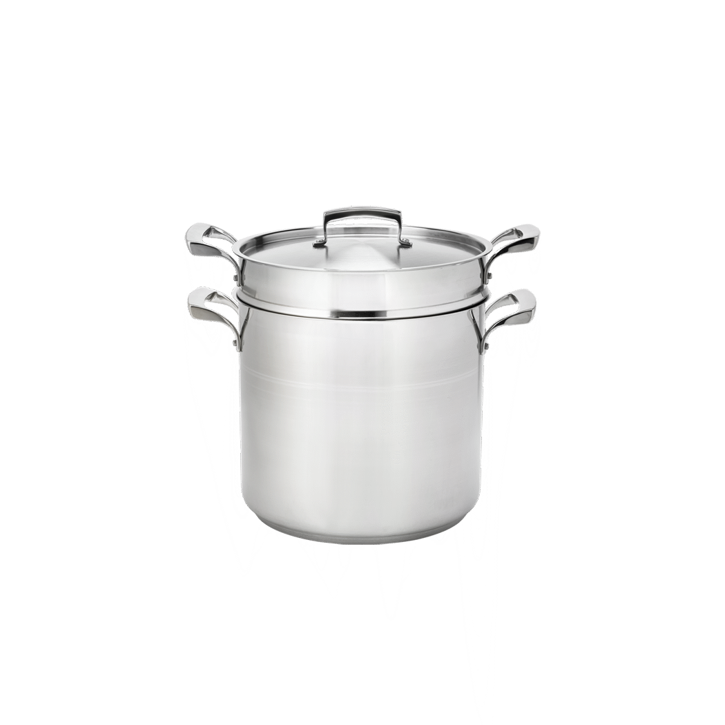 Transform your commercial kitchen with the Browne Foodservice 5724068 Cookware - THERMALLOY Stainless. This high-quality 9 qt SS Double Boiler set is a must-have for any professional chef. Designed with durability in mind, it is made from premium stainless steel that is NSF certified, ensuring it meets the highest standards of cleanliness and safety. The set includes three pieces, allowing for versatile cooking options and efficient preparation of delicate sauces, custards, and chocolates. With its large capacity, this double boiler is perfect for commercial restaurant use, allowing you to easily handle large quantities of ingredients. Upgrade your kitchen today and experience the difference this double boiler set can make in your culinary creations.
