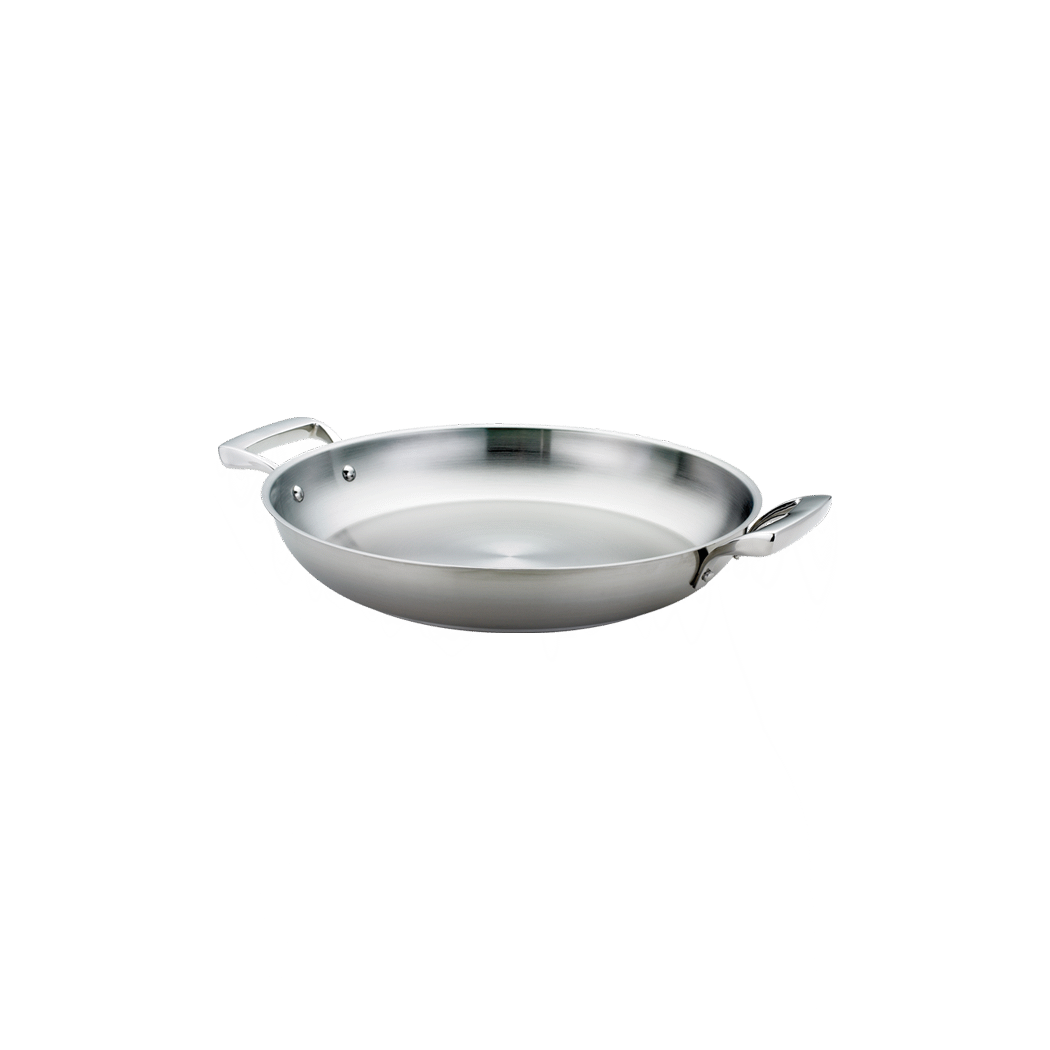 Set the standard with top-tier tools with Browne Foodservice's Cookware - THERMALLOY Stainless. This high-quality paella pan, model number 5724172, is a must-have for any commercial restaurant. Made with durable stainless steel, it ensures even heat distribution and excellent heat retention, allowing for perfect paella every time. With a size of 11x2" (28x5cm), this pan provides ample space for cooking large quantities of paella, making it ideal for busy restaurant kitchens. The THERMALLOY Stainless construction also ensures easy cleaning and maintenance, saving valuable time and effort. Whether you're a professional chef or a restaurant owner, Browne Foodservice's Cookware - THERMALLOY Stainless is the perfect choice for creating delicious and authentic paella dishes that will impress your customers.
