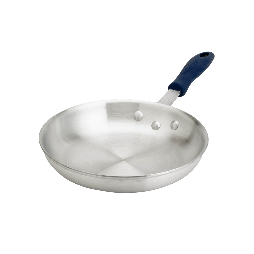 Bring efficiency to kitchen tasks with Browne Foodservice's 5813810 Cookware - THERMALLOY Aluminum. This 10" Aluminum Fry Pan is designed to enhance performance in commercial restaurant settings. The pan features a ThermoGrip Silicone Sleeve, providing a comfortable and secure grip, even when handling hot ingredients. Its NSF certification ensures the highest standards of safety and hygiene. The THERMALLOY Aluminum construction ensures quick and even heat distribution, allowing for precise cooking results. Its durable build and ergonomic design make it ideal for high-volume cooking, while its non-stick surface simplifies cleaning. Whether you're sautéing, frying, or searing, this Browne Foodservice fry pan is a reliable and efficient choice for any commercial kitchen.
