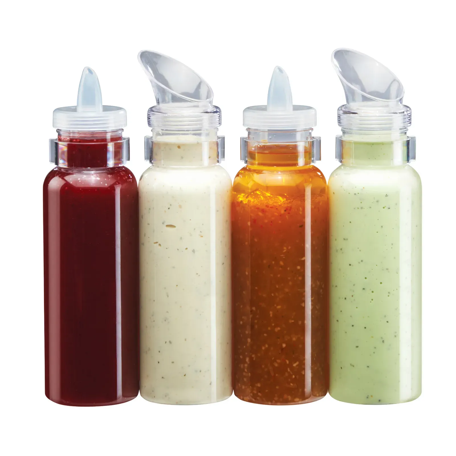 Elevate the dining experience with the Cal-Mil, 3300-28 Salad Dressing Container. Designed specifically for commercial restaurant use, this container is a must-have for any establishment looking to enhance their salad bar or table service. Made from durable polycarbonate, this 28 oz. container is built to withstand the demands of a busy kitchen. Its clear design allows for easy identification of dressings, ensuring quick and efficient service. The 2-1/2" diameter and 10" height make it the perfect size for holding a generous amount of dressing without taking up too much space. Trust Cal-Mil, a reputable vendor in the industry, to provide you with a high-quality salad dressing container that will meet your restaurant's needs.