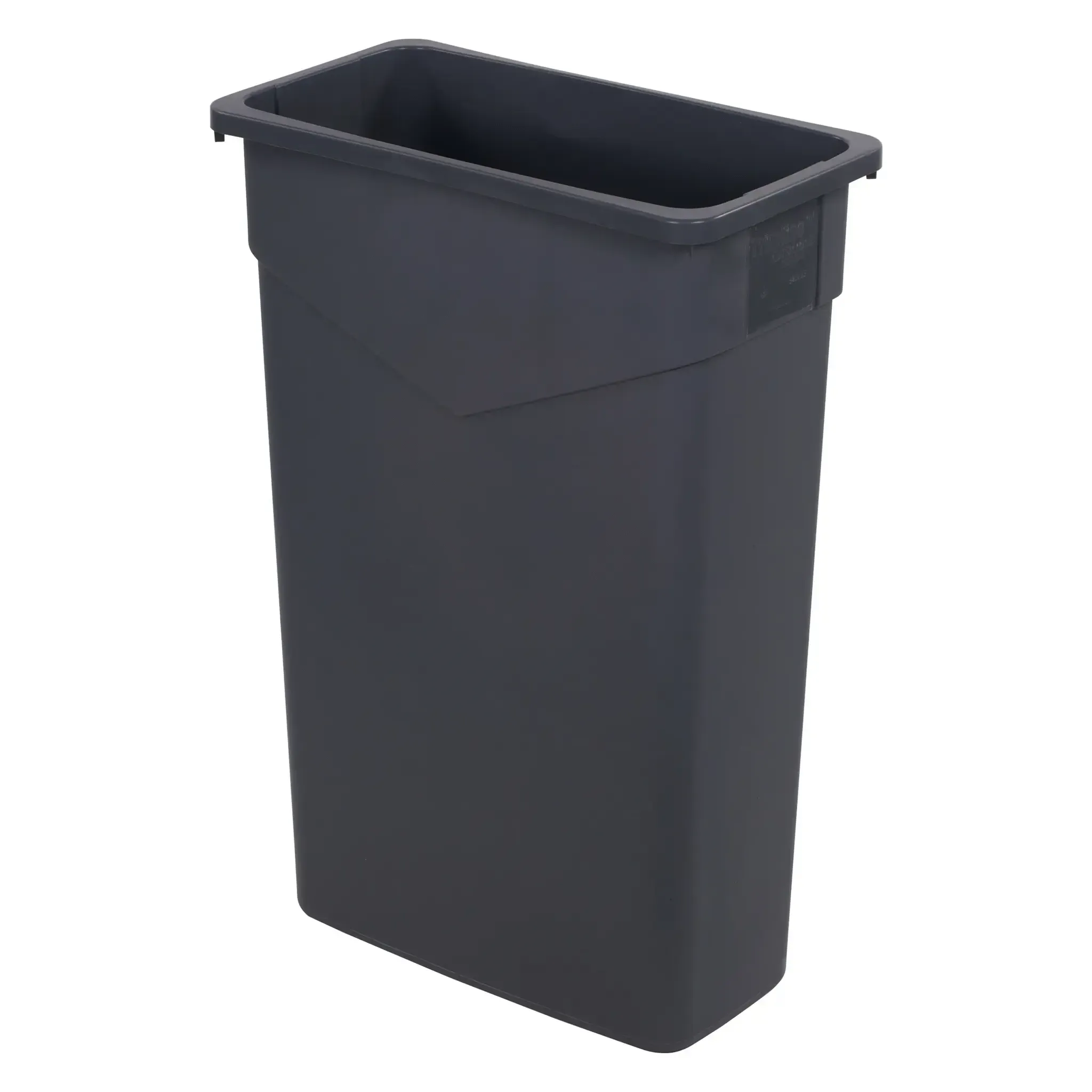 Upgrade your commercial restaurant with the Carlisle 34202323 Trash Receptacle. This heavy-duty, 23-gallon waste container is designed for superior performance in busy restaurant environments. Made of durable polyethylene, it can withstand the demands of daily use. The rectangular shape and integrated corner tabs make it easy to fit into tight spaces, while the bottom helper handles ensure effortless transportation. With a sleek gray color, this trash receptacle seamlessly blends into any restaurant decor. Whether you need to dispose of food waste, packaging materials, or general trash, this Carlisle Trash Receptacle is the perfect solution. Keep your restaurant clean and organized while maintaining a professional appearance. Upgrade today and experience the convenience and durability of the Carlisle 34202323 Trash Receptacle.