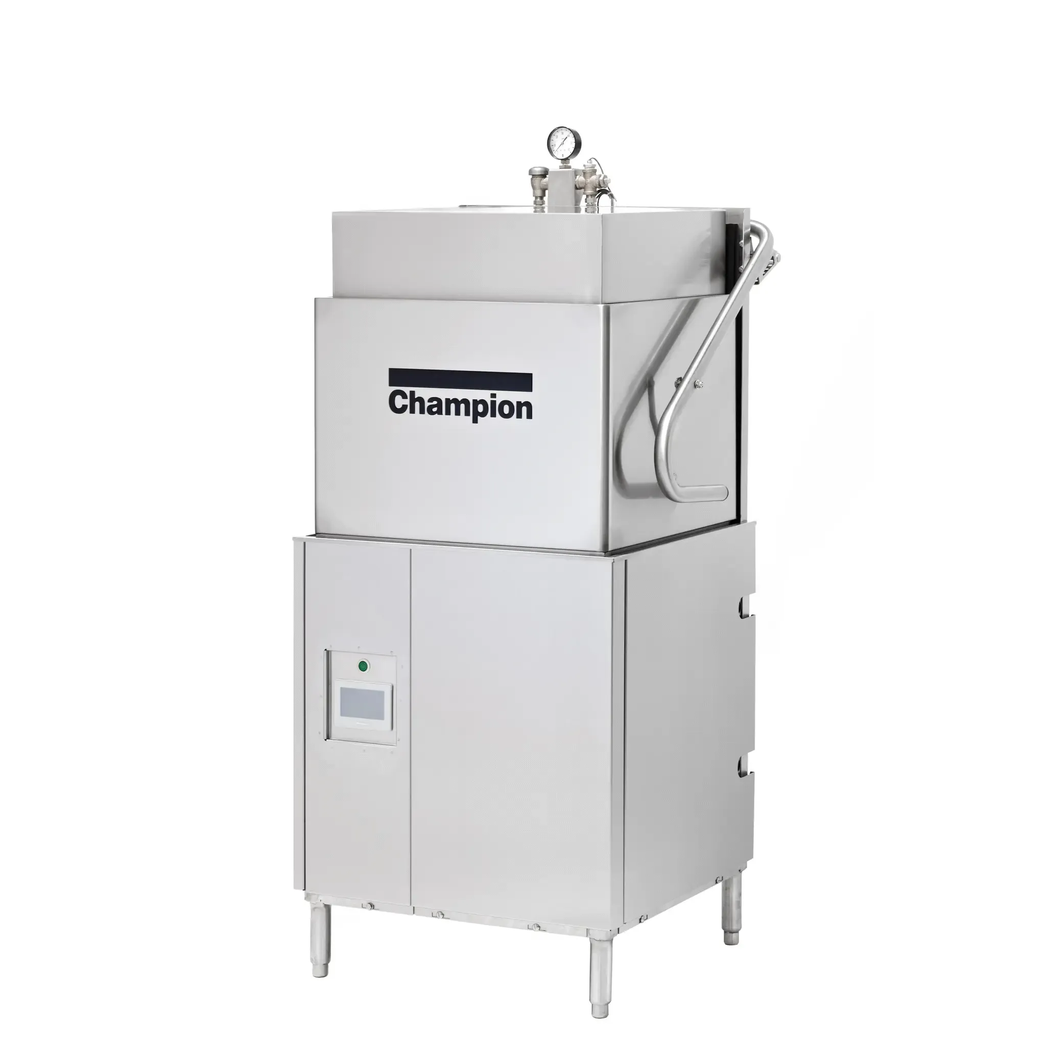 Revolutionize dish care with the Champion DH-6000-NB Dishwasher, Hood Type. This high temperature hood-type dishwashing machine from Champion is designed to meet the demands of commercial restaurants. With its HMI controls, Rinse Sentry, and Auto start features, this dishwasher offers convenience and efficiency. It can wash up to 60 racks per hour, saving you time and ensuring a steady supply of clean dishes. The DH-6000-NB uses only 0.73 US gallons of water per rack, making it an eco-friendly choice. Plus, it comes with a 1-year parts and labor warranty for added peace of mind. Whether you run a busy restaurant or a bustling cafe, this dishwasher is a must-have for maintaining a clean and hygienic kitchen. Trust Champion to deliver exceptional performance and reliability.