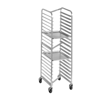 Elevate dining experience daily with Channel Manufacturing, 406AN, Pan Rack, Bun, Nesting. This mobile bun pan rack is designed to optimize space and efficiency in a commercial restaurant setting. With its welded aluminum construction, it offers durability and strength to withstand the demands of a busy kitchen. The open sides and front load design allow for easy access and loading of 18" x 26" bun pans. The 3" spacing between shelves ensures proper air circulation, promoting even baking and cooling. Equipped with 5" swivel casters, this rack can be effortlessly moved around the kitchen for convenience and flexibility. NSF certified and made in the USA, this bun pan rack guarantees quality and compliance with industry standards. Maximize productivity and organization in your restaurant kitchen with Channel Manufacturing, 406AN, Pan Rack, Bun, Nesting.