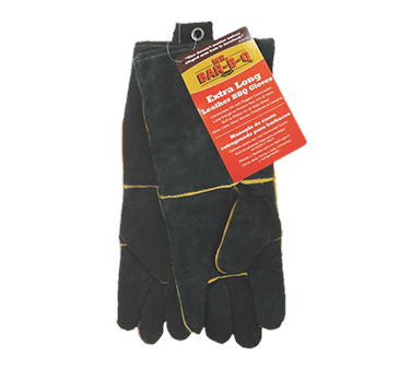 Crafting Commercial Kitchen Brilliance with Chef Master, 40113Y, Gloves, Heat Resistant. These long, leather BBQ gloves from Chef Master are a must-have for any commercial restaurant. Designed to withstand high temperatures, these heat-resistant gloves provide ultimate protection when handling hot items on the grill or in the kitchen. The durable leather material ensures a secure grip, allowing chefs to handle hot pans, pots, and grills with ease. Whether you're grilling up a storm or working in a bustling kitchen, these heat-resistant gloves are a reliable and essential tool for any commercial restaurant. Upgrade your kitchen with Chef Master, 40113Y, Gloves, Heat Resistant.