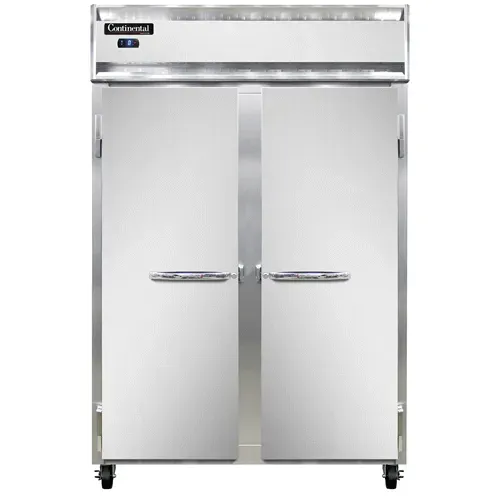 Master your restaurant's kitchen with the Continental Refrigerator, 2FN, Freezer, Reach-In. This top-of-the-line freezer is designed to meet the demanding needs of a commercial restaurant. With its stainless steel front and aluminum interior and ends, it not only looks sleek but also ensures durability and easy cleaning. The two-section design provides ample storage space, allowing you to organize your ingredients and keep them easily accessible. The full-height solid doors seal tightly to maintain the optimal temperature and prevent any cold air from escaping. The electronic control with a digital display allows for precise temperature management, while the hi-low alarm alerts you if the temperature deviates from the set range. The electric condensate evaporator eliminates the need for manual defrosting, saving you time and effort. With a 1/2 HP compressor, this freezer delivers powerful and efficient cooling performance. Made in the USA and certified by cETLus and NSF, you can trust the Continental Refrigerator, 2FN, Freezer, Reach-In to meet the highest standards of quality and safety. Upgrade your kitchen equipment and enhance your restaurant's efficiency with this reliable freezer.