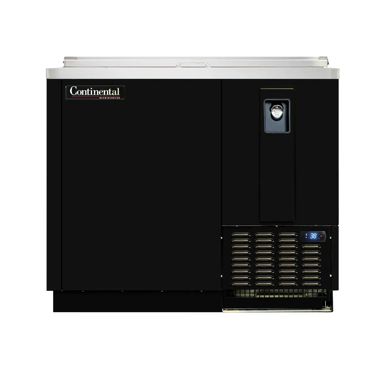 Fuel your restaurant's success with the Continental Refrigerator CBC37 Bottle Cooler. This top-of-the-line cooler is designed to meet the needs of busy commercial restaurants. With its stainless steel top and slide back lid, it provides easy access to your beverages while maintaining a sleek and professional appearance. The CBC37 has a generous capacity, capable of holding up to 12 cases of 12 oz bottles or 18-1/2 cases of 12 oz cans. Its textured baked black enamel exterior and galvanized interior ensure durability and longevity, even in the busiest of restaurant environments. The electronic controller with digital display and hi-low alarm allows for precise temperature control and monitoring. The removable cap catcher makes for easy cleaning and maintenance. With self-contained refrigeration and a 1/5 hp compressor, this bottle cooler is both efficient and reliable. Trust Continental Refrigerator, a trusted name in commercial refrigeration, and invest in the CBC37 Bottle Cooler for your restaurant today.