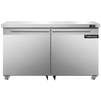 Upgrade your restaurant kitchen with the Continental Refrigerator SWF48N-U Undercounter Freezer. This two-section freezer has a spacious 48"W design and a generous 13.4 cu ft capacity, providing ample storage space for your frozen ingredients and products. The field rehingeable doors allow for easy customization to suit your kitchen layout. With its stainless steel front, top, and end panels, as well as an aluminum interior, this freezer is not only durable but also easy to clean and maintain. The front breathing design and rear-mounted self-contained refrigeration ensure efficient cooling performance. The electronic control with a digital display allows for precise temperature management, while the hi-low alarm alerts you to any temperature fluctuations. Made in the USA and certified by cETLus and NSF, this Continental Refrigerator Undercounter Freezer is a reliable and high-quality addition to any commercial restaurant.