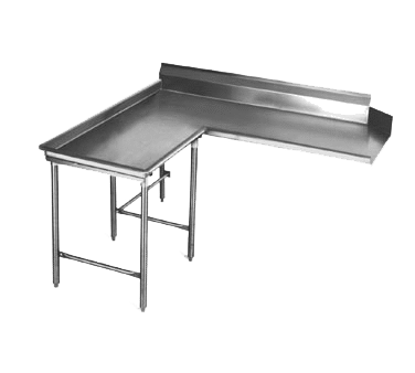 Enhance your restaurant's presentation with innovation using the Eagle Group CDTCIL-48-16/4 Dishtable. This clean "L" shaped dishtable is designed specifically for commercial restaurant use, offering a convenient and efficient solution for your dishwashing needs. With a 48" machine to corner and 60" corner to end dimensions, this dishtable provides ample space for your dishwashing operations. The 30" working depth ensures that you have enough room to handle large volumes of dishes, while the 8" high backsplash and raised rolled edges on the front and sides prevent water from splashing onto your floors. Made from durable 16/430 stainless steel, this dishtable is built to withstand the demands of a busy restaurant environment. The galvanized legs and crossbracing provide stability, and the adjustable metal feet allow for easy leveling. NSF certified for food safety, this dishtable is a reliable and practical addition to any commercial kitchen.