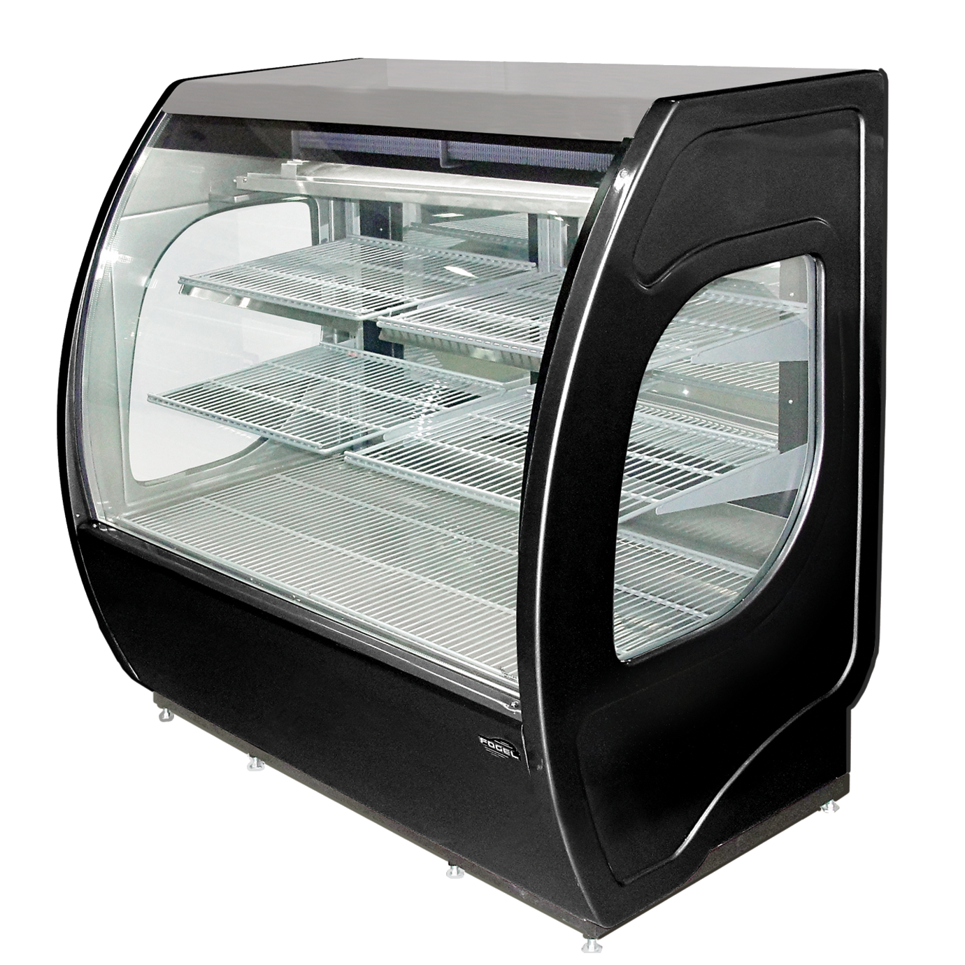 Introducing the Fogel ELITE-4-DC-HC-B Display Case, Refrigerated Deli, designed to inspire freshness in your commercial restaurant. With its curved front glass and sleek black coated steel exterior, this display case adds a touch of elegance to any establishment. Boasting a spacious 19.0 cu. ft. capacity, it provides ample room to showcase your delectable bakery creations. The two rear sliding glass doors allow for easy access and convenient restocking, while the four shelves and three levels of display glass sides offer versatile presentation options. The LED lighting illuminates your products, enhancing their visual appeal. Equipped with electronic controls and gravity coil self-contained refrigeration, this display case ensures optimal temperature and humidity levels for your baked goods. With a 1/4 HP motor and 115v/60/1-ph power supply, it delivers reliable performance. Elevate your bakery offerings with the Fogel ELITE-4-DC-HC-B Display Case, Refrigerated Deli.