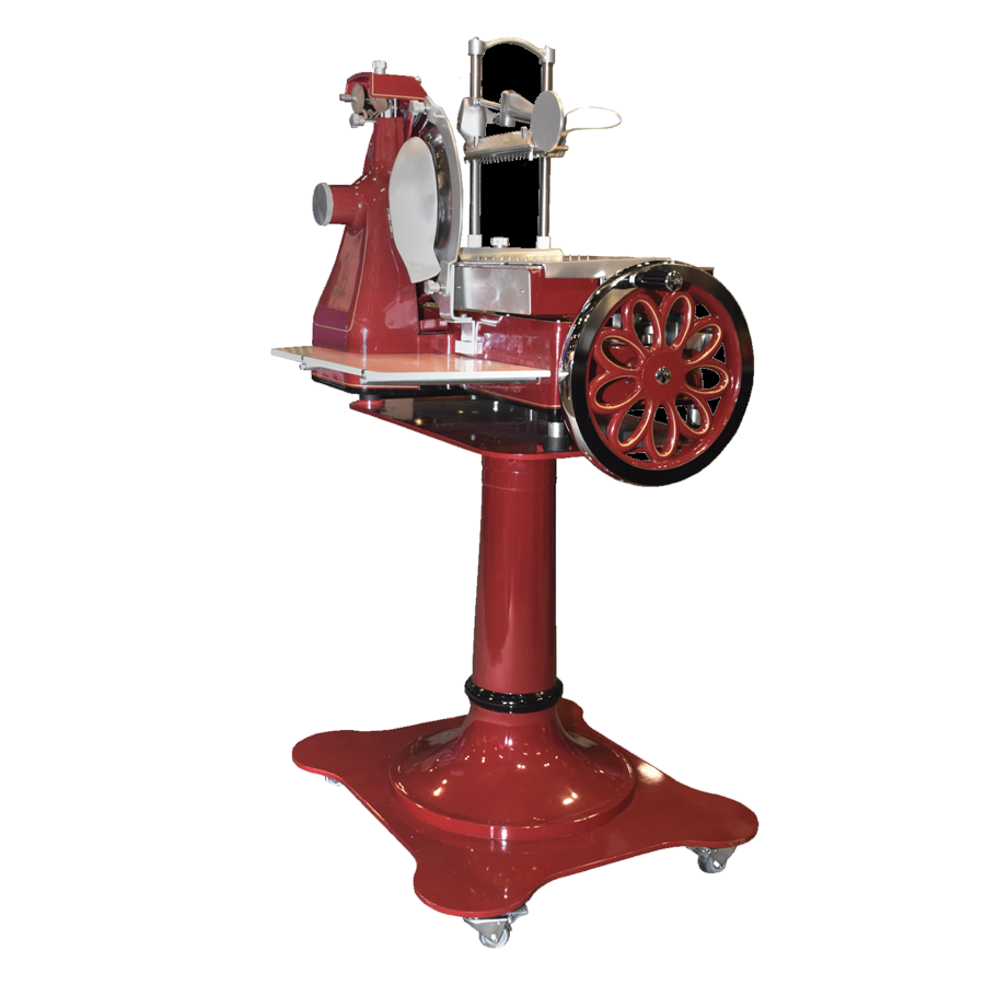 Cook with confidence and flair using the Globe FS14 Food Slicer. This traditional premium flywheel slicer is Italian-designed and perfect for commercial restaurant use. With its 14" chrome-plated carbon steel blade, you can effortlessly slice through a variety of ingredients with precision. The slicer offers nine thickness adjustments up to 2.5mm, allowing you to customize the thickness of your slices to suit your culinary needs. It also features a blade protection ring and a built-in sharpener, ensuring the longevity and sharpness of the blade. The aluminum receiving shelf provides a convenient space to collect the sliced ingredients, while the aluminum construction with stainless steel trim ensures durability and easy cleaning. The slicer's baked enamel paint, gold, and black detailing add a touch of elegance to any kitchen. ETL-Sanitation listed, this Globe FS14 Food Slicer is a reliable and efficient tool that will enhance your restaurant's food preparation process.