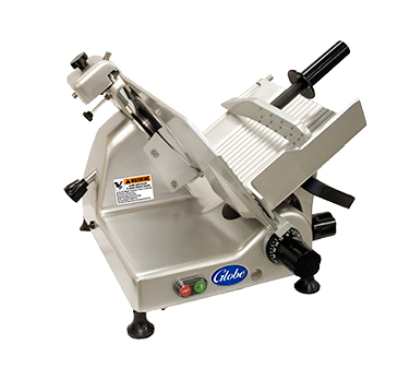 Streamline your restaurant cooking operations with the Globe G10 Electric Food Slicer. This manual slicer is designed to make slicing food a breeze, with its 10" diameter knife and extended chute and end weight that can accommodate products up to 10-1/2" in height. The pyramid-shaped end weight teeth and gripping teeth on the underside of the end weight ensure a secure grip on the food, while the top-mounted sharpener keeps the knife sharp for precise slicing every time. The belt-driven, ball bearing chute slide allows for smooth and effortless operation. Safety features include an attached knife ring guard, knife cover interlock, and removable slice deflector. With its anodized aluminum construction and 1/3 HP motor, this food slicer is built to withstand the demands of a commercial restaurant kitchen. Upgrade your slicing capabilities with the Globe G10 Electric Food Slicer.