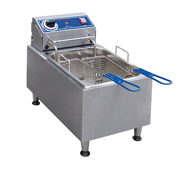 Discover kitchen perfection with the Globe PF10E Electric Countertop Fryer. This high-quality fryer is designed to meet the demands of a busy commercial restaurant kitchen. With a 10 lbs. oil capacity and a 70-375F thermostat, you can easily fry a variety of delicious foods to perfection. The manual reset feature ensures safety and peace of mind. The removable control box and element make cleaning a breeze, while the swing-up element allows for easy access to the fry pot. The fryer also comes with two nickel-plated fry baskets with insulated handles, allowing you to fry multiple items at once. The 3-1/2" stainless steel adjustable feet provide stability, and the durable stainless steel construction ensures long-lasting performance. With 1700 watts of power, this fryer is ready to handle any frying task. Trust Globe, a leading name in commercial kitchen equipment, and elevate your restaurant's frying capabilities with the PF10E Electric Countertop Fryer.