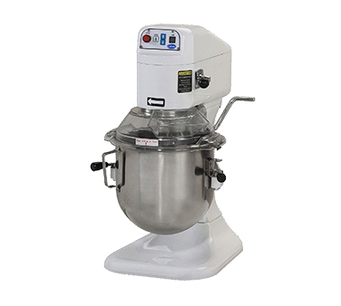 Master your restaurant's kitchen with the Globe SP08 Planetary Mixer. This countertop model is designed to meet the demands of a busy commercial restaurant. With its 8 qt. capacity and gear-driven transmission, this mixer can handle a variety of mixing tasks with ease. The 3-speed settings allow for precise control, while the front-mounted touchpad controls with a 15-minute digital timer ensure accurate timing for your recipes. Safety is a top priority with the SP08, as it features a safety interlocked bowl lift and thermal overload protection. The mixer comes complete with a polycarbonate bowl guard with a chute, a stainless steel bowl and whip, and an aluminum beater and spiral dough hook. The cast aluminum body is durable and built to last. Powered by a 1/4 HP motor, this mixer operates at 115v/60/1-ph and is NSF and cETLus certified. Upgrade your kitchen with the Globe SP08 Planetary Mixer and experience the efficiency and reliability it brings to your restaurant.