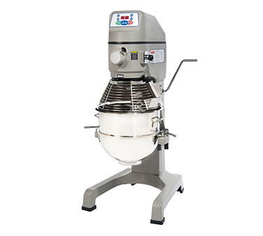 Mobilize your kitchen with the Globe SP30P Planetary Mixer. This floor model mixer is designed to meet the demands of a commercial restaurant, making it an essential tool for any professional chef. With its 30 qt. stainless steel bowl and high torque transmission, this mixer can handle large batches of dough, batter, and other ingredients with ease. The three-speed fixed motor and front-mounted touchpad controls with a 60-minute digital timer allow for precise mixing and consistency. The mixer also includes a stainless steel removable bowl guard with a built-in ingredient chute, ensuring safety and convenience during operation. The safety interlocked bowl guard bowl lift and non-slip rubber feet provide stability and security. Made with a cast iron body, this mixer is built to withstand the rigors of a busy kitchen. Trust the Globe SP30P Planetary Mixer to deliver exceptional performance and reliability in your commercial restaurant.