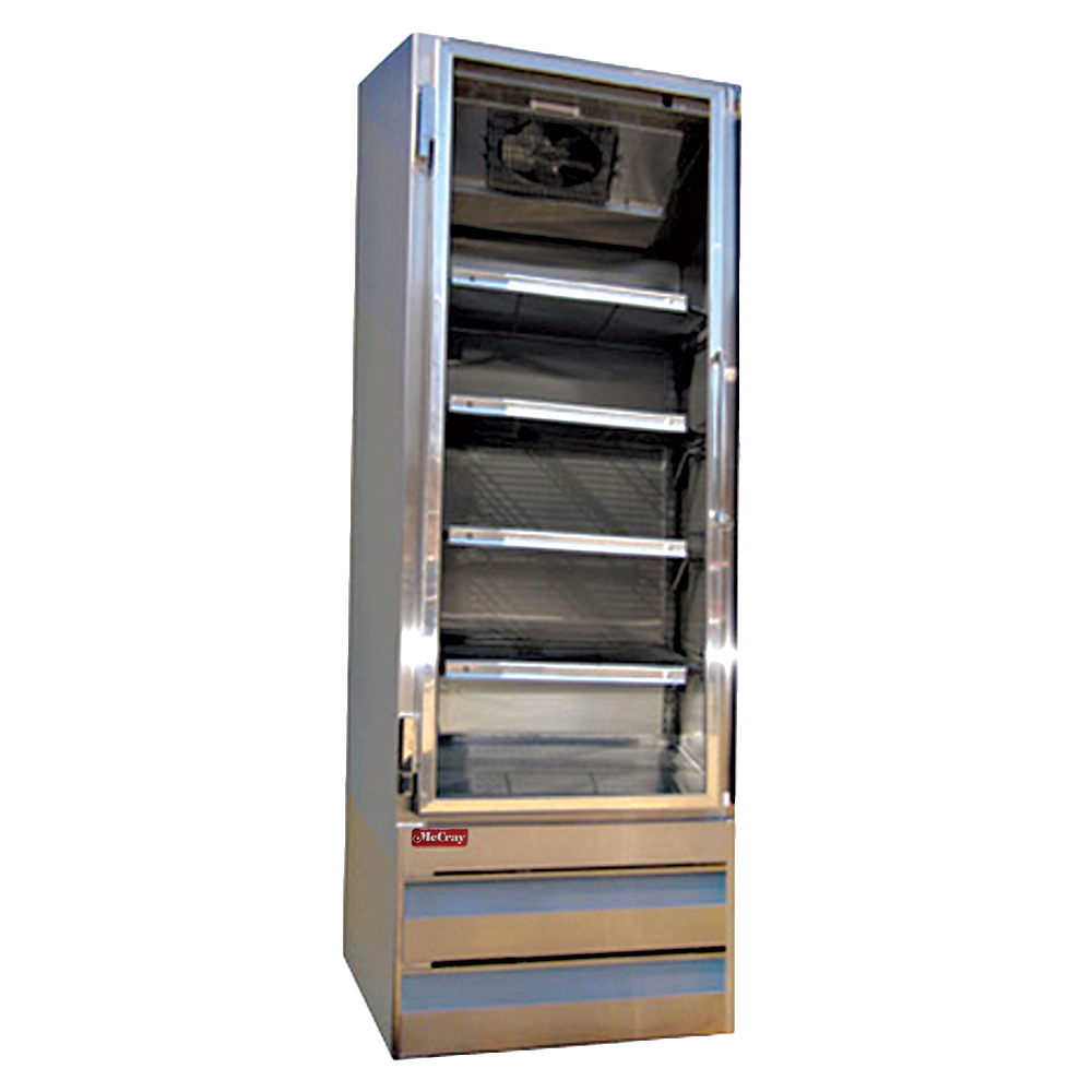 Optimize your kitchen efficiency with the Howard-McCray GR19BM-S Refrigerator Merchandiser. This one-section refrigeration unit is designed to meet the demands of a commercial restaurant setting. With a spacious 19 cu. ft. capacity and four epoxy coated shelves, you'll have plenty of room to store and display your products. The hinged glass door allows for easy access and visibility, while the stainless steel exterior and interior ensure durability and easy cleaning. The bottom mount self-contained refrigeration system keeps your items at the perfect temperature, while the electronic controls and automatic defrost feature provide convenience and peace of mind. The LED lighting illuminates your products, making them even more enticing to customers. With a 1/3 HP compressor and 115v/60/1-ph power supply, this refrigerator merchandiser is both powerful and energy-efficient. Trust Howard-McCray to deliver a high-quality, reliable product that will enhance your restaurant's operations.