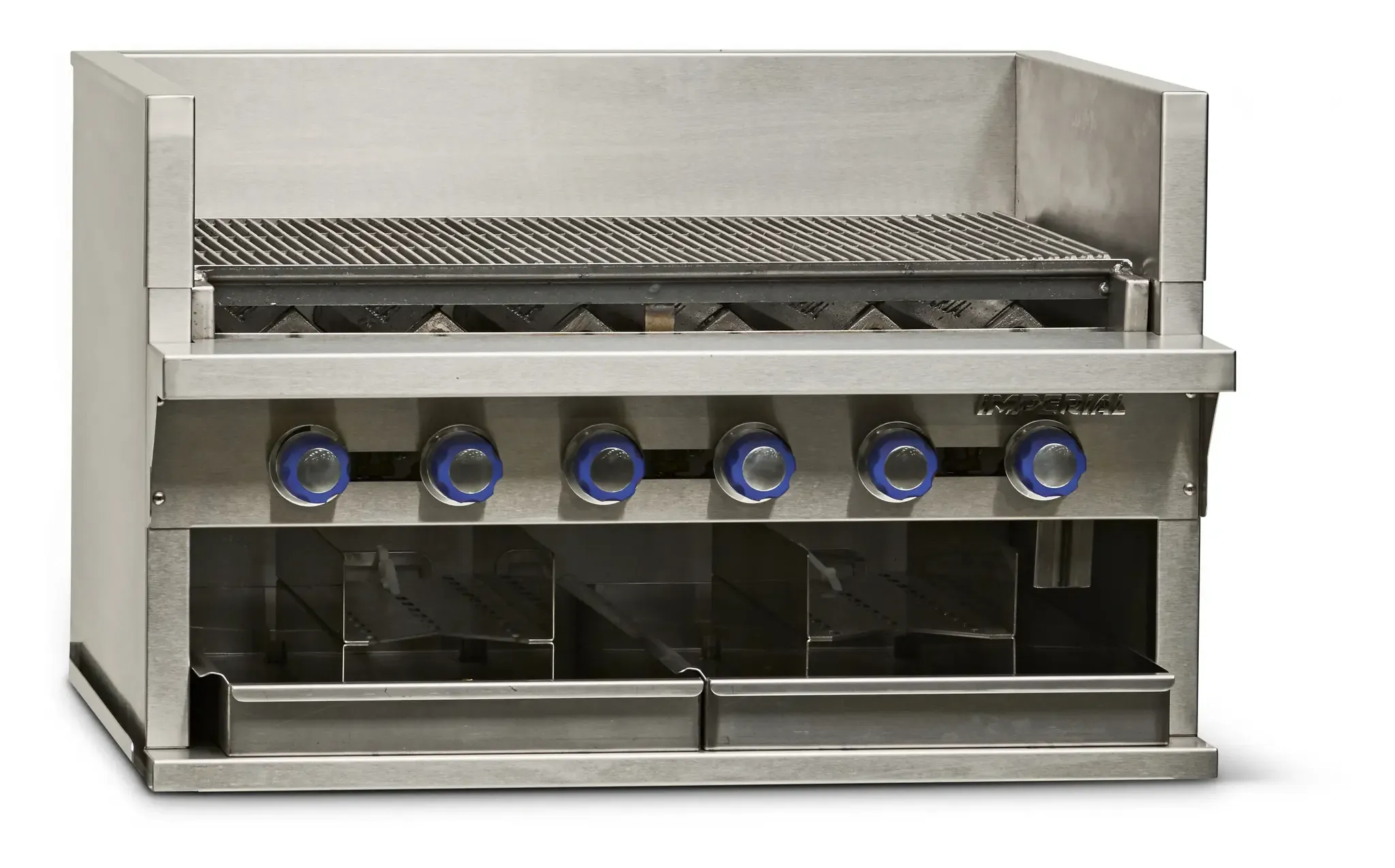 Fuel your passion for cooking with the Imperial IABA-36 Gas Countertop Charbroiler. This high-quality charbroiler is designed to meet the demands of a commercial restaurant kitchen. With its six stainless steel burners, cast iron radiants, and grates, this charbroiler delivers exceptional heat distribution and retention for perfectly cooked food every time. The smoke system, complete with two log holders, adds a delicious smoky flavor to your dishes, enhancing their taste and appeal. The full-width grease gutter, removable grease can, and water pans make cleaning up a breeze, ensuring a hygienic cooking environment. Made with durable stainless steel, this charbroiler is built to withstand the rigors of a busy kitchen. With a powerful 120,000 BTU output, this charbroiler provides the heat you need to cook large quantities of food quickly and efficiently. Trust the Imperial IABA-36 Gas Countertop Charbroiler to elevate your culinary creations and keep your customers coming back for more.