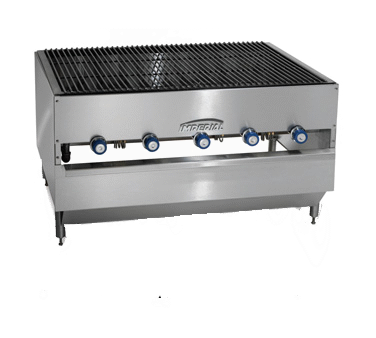 Ignite culinary passion with the Imperial ICB-4836 Chicken Charbroiler. This gas countertop charbroiler is a must-have for any commercial restaurant. With its 48" size and 5 radiant "H" burners, it provides ample space and even heat distribution for grilling chicken to perfection. The round rod grates ensure beautiful grill marks and enhance the flavor of the chicken. Made with a stainless steel front and sides, this charbroiler is not only durable but also easy to clean. The 36"D broiling surface allows for large quantities of chicken to be cooked at once, making it ideal for busy restaurant kitchens. With 250,000 BTU of power, this charbroiler delivers high-performance grilling every time. The 4" legs provide stability and allow for easy placement on any countertop. NSF certified, this Imperial Chicken Charbroiler guarantees safety and quality. Upgrade your restaurant's grilling capabilities with the Imperial ICB-4836 Chicken Charbroiler.