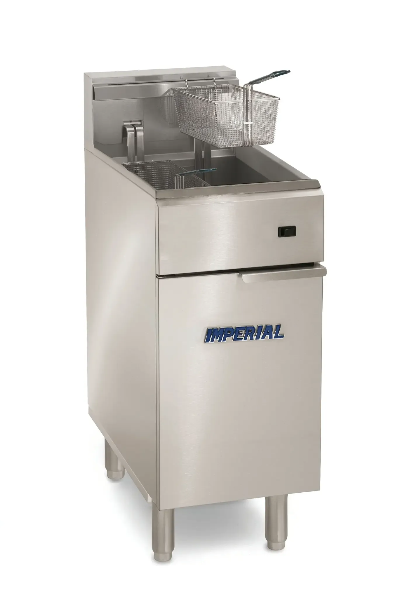 Elevate your dining experience with the Imperial IFS-40-EU Fryer. This electric, floor model fryer is designed to meet the demands of a busy commercial restaurant. With a 40lb. capacity, it can handle large quantities of food, ensuring efficient cooking and faster service. The tilt-up electrical elements and snap action thermostat allow for precise temperature control, resulting in perfectly cooked dishes every time. The fryer comes complete with a wire mesh crumb screen and two nickel-plated baskets, making it easy to fry multiple items simultaneously. Its stainless steel construction not only adds durability but also gives it a sleek and professional look. The 6" legs provide stability and make cleaning underneath a breeze. With a power output of 14.0 kW, this fryer is both powerful and energy-efficient. Trust Imperial to deliver high-quality equipment that enhances your restaurant's productivity and culinary offerings.