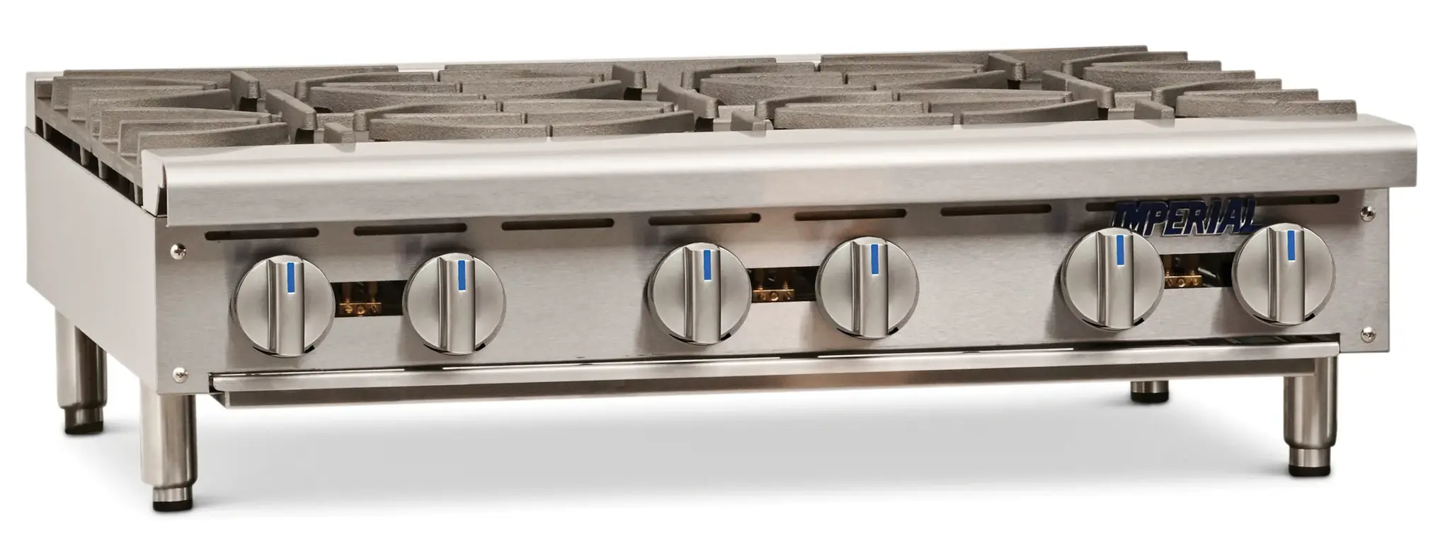 Fuel your passion for cooking with the Imperial IHPA-2-24 Hotplate. This gas countertop hotplate is designed to meet the demands of a commercial restaurant kitchen. With two open burners and cast iron grates, this hotplate provides even heat distribution and excellent cooking performance. The removable crumb tray makes cleaning a breeze, ensuring a hygienic cooking environment. The stainless steel front, sides, and landing ledge not only add durability but also give the hotplate a sleek and professional look. The adjustable feet allow for easy installation and leveling on any countertop. With a powerful 64,000 BTU output, this hotplate can handle any cooking task with ease. It is CSA Flame, CSA Star, NSF, and CE certified, guaranteeing its safety and quality. Upgrade your restaurant kitchen with the Imperial IHPA-2-24 Hotplate and experience the difference in cooking efficiency and performance.