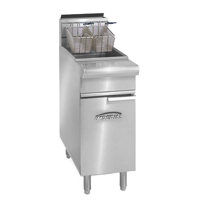 Revolutionize your cooking setup with the Imperial IRF-50-OP Fryer. This gas floor model fryer is designed to meet the demands of a busy commercial restaurant kitchen. With a 50lb. capacity and open pot design, this fryer allows you to cook large quantities of delicious fried foods with ease. The snap action thermostat ensures precise temperature control, while the included wire mesh crumb screen and nickel-plated baskets make cleaning a breeze. Made with durable stainless steel, this fryer is built to withstand the rigors of a busy kitchen. The front, door, sides, and basket hangers are also constructed from stainless steel for added durability. With 6" legs, this fryer is easy to move and position in your kitchen. With a powerful 120000 BTU, this fryer delivers quick and efficient cooking results. NSF, CE, and CSA certified, you can trust the quality and safety of this Imperial fryer. Upgrade your kitchen equipment with the Imperial IRF-50-OP Fryer and experience the difference in performance and reliability.