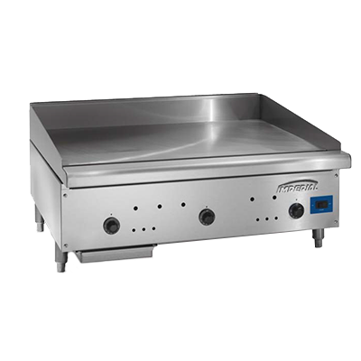 Invest in superior quality with the Imperial ISCE-48 Gas Countertop Griddle. This commercial-grade griddle is designed to meet the demands of a busy restaurant kitchen. With a spacious 48" W x 24" D cooking surface, you'll have plenty of room to cook multiple dishes at once. The 1" thick smooth steel plate ensures even heat distribution for consistent cooking results. The solid state thermostat allows for precise temperature control, while the 4" wide grease gutter and removable grease can make cleaning up a breeze. Made with stainless steel front, sides, ledge, and splash guards, this griddle is not only durable but also easy to clean. The 4" legs provide stability and the 120v/60/1-ph, 2.0 amp power supply ensures efficient operation. With a powerful 96000 BTU output, this griddle is ready to handle any cooking task. Trust Imperial for all your commercial kitchen needs.