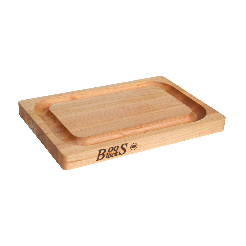 Revamp service with clever options using the John Boos, 209, Cutting Board, Wood. This Chop-N-Slice Cutting Board is a must-have for any commercial restaurant. With its 12W x 8D x 1 thick dimensions, it provides ample space for slicing, dicing, and chopping ingredients. The edge grain construction ensures durability and longevity, making it perfect for heavy-duty use in a busy kitchen. Made from antimicrobial Northern Hard Rock Maple, this cutting board is not only hygienic but also resistant to bacteria growth. The grooved design prevents juices from spilling onto the countertop, keeping your workspace clean and safe. The reversible feature allows you to use both sides of the board, maximizing its functionality. To maintain its quality, simply apply the Antimicrobial Boos Block Cream Finish with Beeswax. Upgrade your restaurant's cutting board game with the John Boos, 209, Cutting Board, Wood.