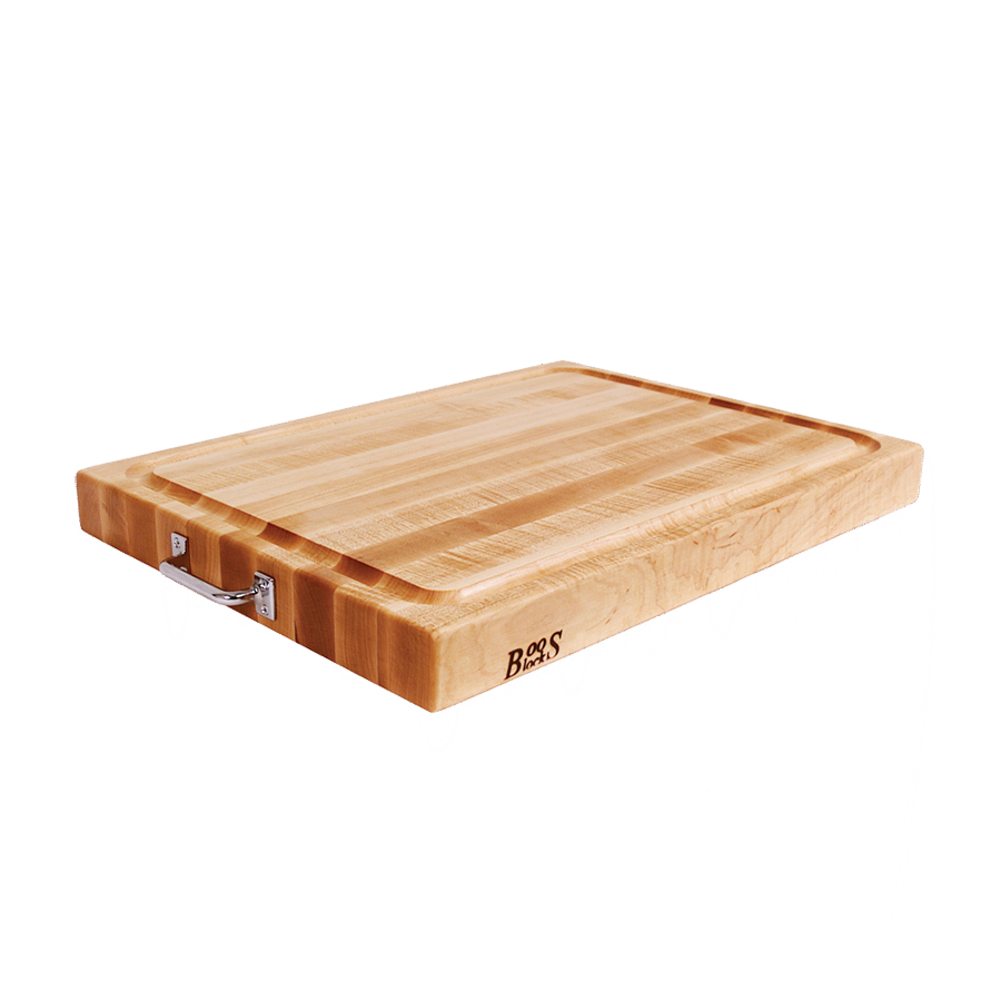 Upgrade your restaurant service with the John Boos RAFR2418 Cutting Board. Crafted with edge grain construction from antimicrobial Northern Hard Rock Maple, this cutting board is designed to withstand the demands of a commercial kitchen. The 24W x 18D x 2-1/4 thick size provides ample space for chopping, slicing, and dicing ingredients, while the reversible design allows for extended use. The grooved surface helps to catch juices and prevent spills, keeping your workspace clean and organized. Equipped with chrome handles, this cutting board is easy to transport and store. The antimicrobial Boos Block Cream Finish with Beeswax adds an extra layer of protection against bacteria, ensuring food safety. Trust John Boos, a reputable vendor in the restaurant industry, to deliver a high-quality cutting board that will enhance your kitchen efficiency and maintain the highest standards of cleanliness.