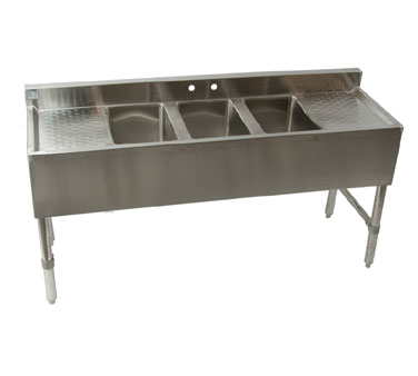 Revamp service with versatile option! Upgrade your commercial restaurant with the Klingers Trading BAR32D Underbar Sink Units. Crafted with 18/304 stainless steel construction, this three-compartment sink is built to withstand the demands of a busy kitchen. Measuring 59-1/2"W x 18-3/4"D x 33"H, it provides ample space for washing, rinsing, and sanitizing dishes. The 10"W x 14" front-to-back x 10" deep compartments are perfect for accommodating large pots, pans, and utensils. Equipped with 12-3/4" drainboards on the left and right, you'll have convenient space for drying and organizing dishes. The 3"H backsplash and stainless steel apron on the front and sides ensure a clean and professional look. With stainless steel legs and side crossbracing, this sink unit offers stability and durability. It also includes two drain baskets and a 10" faucet for added convenience. Upgrade your restaurant's efficiency and cleanliness with the Klingers Trading BAR32D Underbar Sink Units.