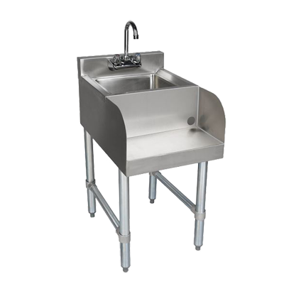 Upgrade workflow with innovative resource. Introducing the Klingers Trading, BS-1620, Underbar Blender Station. This free-standing blender station is designed to enhance efficiency in commercial restaurant settings. With its 18 gauge stainless steel top and galvanized legs, this station is built to withstand the demands of a busy kitchen. The 12" wide x 10" front-to-back x 6" deep dump sink, faucet, and drain basket are included, providing a convenient space for disposing of waste and cleaning utensils. The adjustable cross bracing ensures stability and durability, while the ETL-Sanitation certification guarantees the highest standards of cleanliness and safety. Whether you're blending smoothies, soups, or cocktails, this blender station is a must-have for any restaurant looking to streamline their operations. Trust Klingers Trading for quality and reliability. Upgrade your restaurant's workflow today with the BS-1620 Underbar Blender Station.
