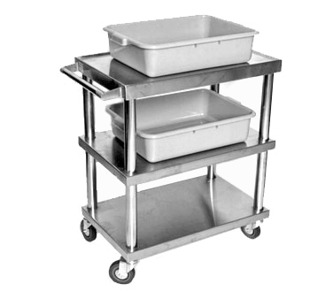 Introducing the Klingers Trading CS3SM-CART, a versatile and practical solution for commercial restaurant use. Streamline your setup with this utility bus cart, designed to make your bussing tasks a breeze. Made from durable 430 stainless steel, this cart is built to withstand the demands of a busy restaurant environment. With a generous capacity of 250lbs, it can easily accommodate three bus trays, allowing you to transport dirty dishes, glassware, and utensils with ease. The open design of the cart provides easy access and efficient loading and unloading. Equipped with four 4" ball bearing swivel casters, this cart glides smoothly across any surface, making it effortless to maneuver through crowded dining areas. Whether you need to clear tables or restock supplies, the Klingers Trading CS3SM-CART is the perfect companion for your commercial restaurant needs.