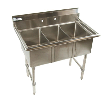 Revolutionize service with the Klingers Trading ECS3SM Sink, a versatile option designed specifically for commercial restaurant use. Crafted with 18/304 stainless steel construction, this economy sink is built to withstand the demands of a busy kitchen. The three compartment design provides ample space for washing, rinsing, and sanitizing dishes, while the 9-inch backsplash helps maintain a clean and hygienic work area. With three 12-inch wide by 20-inch front-to-back by 11-inch deep compartments, this sink offers plenty of room for even the largest pots and pans. The stainless steel gussets, legs, crossbracing, and adjustable bullet feet ensure stability and durability, while the 8-inch O.C splash mount faucet holes allow for easy installation of your preferred faucet. Trust Klingers Trading to deliver a high-quality sink that will streamline your restaurant's dishwashing process.