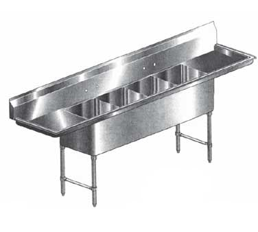 Introducing the Klingers Trading HDS42D Sink, a practical alternative for streamlining setup in your commercial restaurant. Crafted with 16/304 stainless steel construction, this four-compartment sink is built to withstand the demands of a busy kitchen. With four spacious compartments measuring 16"W x 20" front-to-back x 12" deep, you'll have ample space for washing, rinsing, and sanitizing dishes. The 9"H backsplash and two sets of 8" O.C splash mount faucet holes ensure a clean and efficient workspace. Equipped with two 18" drainboards, stainless steel gussets, legs, crossbracing, and adjustable bullet feet, this sink offers stability and durability. ETL certified, it meets the highest safety standards. Whether you're running a bustling restaurant or a catering service, the Klingers Trading HDS42D Sink is the perfect addition to your kitchen, providing convenience, efficiency, and reliability.