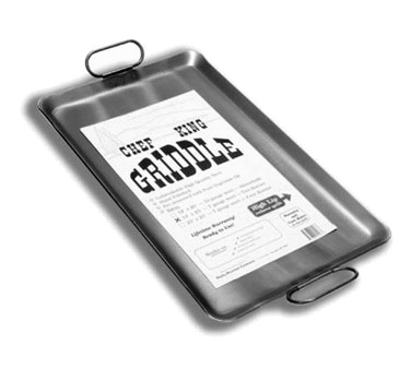 Introducing the Klingers Trading RM1423 Portable Grill/Griddle, the practical alternative for streamlining setup in your commercial restaurant. This versatile unit, designed for commercial use, is perfect for adding a griddle surface to your existing burners. With its heavy gauge 3/16" steel construction, this Rocky Mountain Add-On Griddle Top is built to withstand the demands of a busy kitchen. The heat-resistant handles ensure safe and easy handling, while the 14" x 23" size covers two burners, maximizing your cooking space. Whether you're whipping up breakfast favorites like pancakes and bacon or searing steaks and vegetables, this portable grill/griddle is a must-have for any commercial kitchen. Trust Klingers Trading, a reputable vendor in the industry, to deliver a high-quality product that will enhance your restaurant's efficiency and culinary offerings.