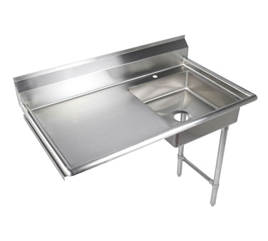 Modernize operations with the Klingers Trading, UDT48L Dishtable. This undercounter dish table is designed to streamline your restaurant's workflow and enhance efficiency. Made with durable 16/304 stainless steel construction, this dish table is built to withstand the demands of a busy commercial kitchen. The 24" left drainboard provides ample space for stacking dirty dishes, while the 20" x 20" pre-rinse sink on the right allows for convenient prepping and rinsing. The stainless steel legs ensure stability and durability, while the ETL-Sanitation certification guarantees the highest standards of cleanliness and hygiene. Whether you're running a small cafe or a bustling restaurant, the Klingers Trading, UDT48L Dishtable is the perfect addition to your kitchen. Upgrade your restaurant's operations today and experience the benefits of this smart choice.