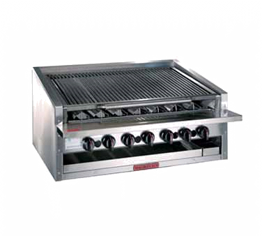 Unleash your kitchen's potential with the Magikitchn APM-RMB-648 Charbroiler. This countertop gas charbroiler is designed to meet the demands of a busy commercial restaurant. With a width of 48" and a height of 13", it provides ample cooking space for grilling a variety of meats and vegetables. The free-floating round rod top grate with EZ tilt to front grease trough ensures even heat distribution and easy cleaning. Made with stainless steel radiants and stainless steel on all sides, this charbroiler is built to withstand the rigors of a professional kitchen. It also features a 6" service shelf and a top grid scraper for added convenience. Whether you're grilling steaks, burgers, or kebabs, the Magikitchn APM-RMB-648 Charbroiler is the perfect addition to any commercial restaurant kitchen.