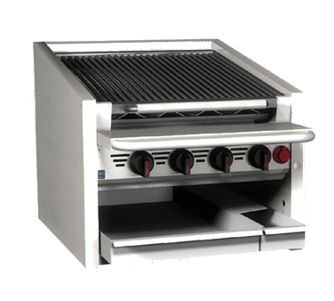 Discover kitchen perfection with the Magikitchn CM-RMB-648 Gas Countertop Charbroiler. This radiant charbroiler is designed to meet the demands of a commercial restaurant, offering a wide range of features that enhance efficiency and performance. The 48" wide unit is made of 95% stainless steel, ensuring durability and longevity in a busy kitchen environment. The free-floating round rod top grate with EZ tilt to front grease trough allows for easy cleaning and maintenance, while the stainless steel radiants distribute heat evenly for consistent cooking results. The charbroiler also includes a 6" service shelf with a utility bar, providing additional workspace and storage options. With water tubs and a top grid scraper, this charbroiler is a versatile and essential tool for any restaurant looking to achieve perfection in their kitchen. Trust Magikitchn for quality and reliability in every meal.