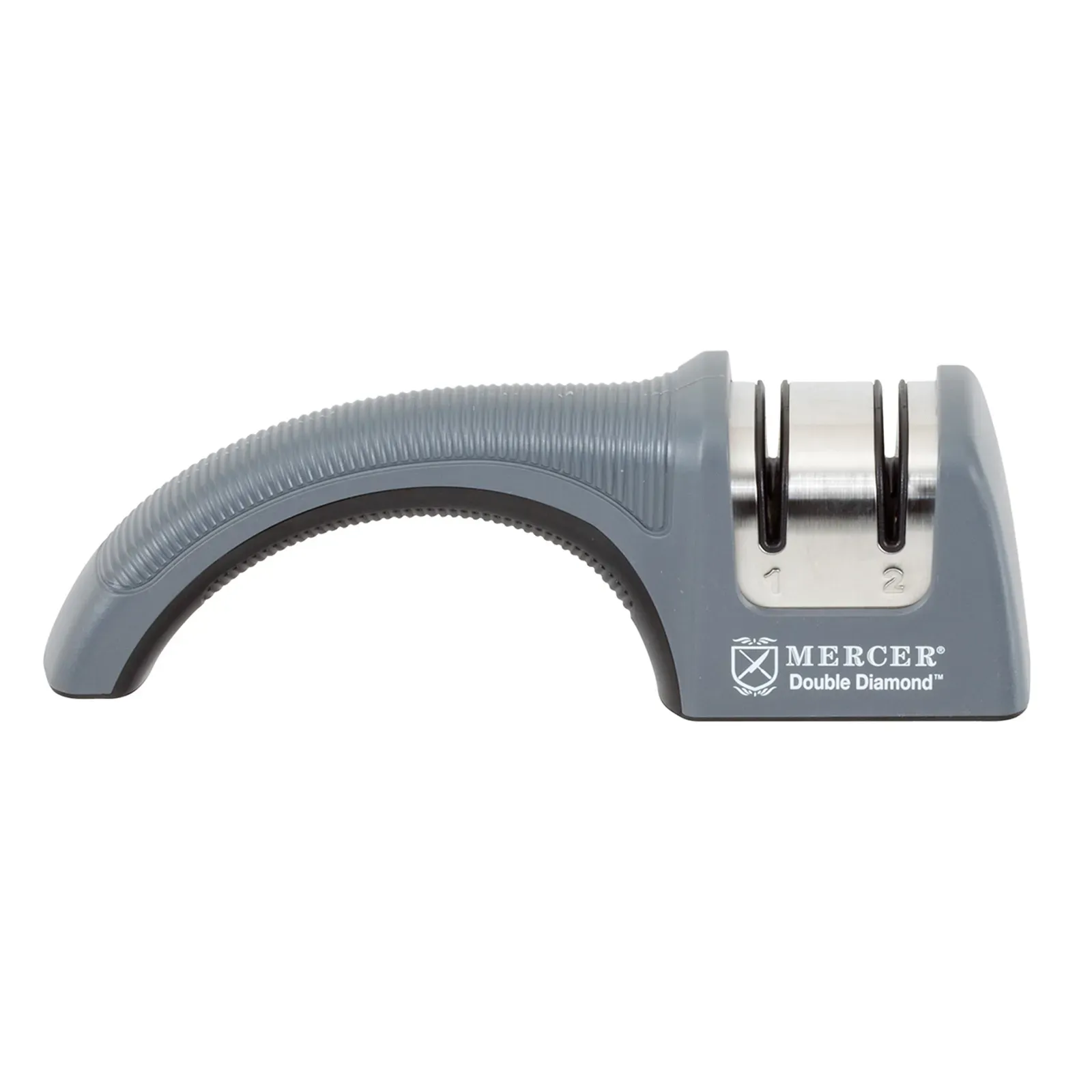Elevate kitchen operations with the Mercer Culinary, M10200, Knife Sharpener, Handheld. This Double Diamond, Manual Knife Sharpener is a must-have tool for any commercial restaurant. With 100% diamond abrasives, it can sharpen all types of knives, ensuring precision and efficiency in food preparation. The sharpener features two stages: sharpening and honing, allowing you to achieve a razor-sharp edge on your blades. The textured handle provides a secure hold, giving you full control while sharpening. Made in the USA, this knife sharpener is built to last and withstand the demands of a busy kitchen. Trust Mercer Culinary, a reputable vendor in the industry, to deliver a high-quality product that will enhance your restaurant's cutting performance.