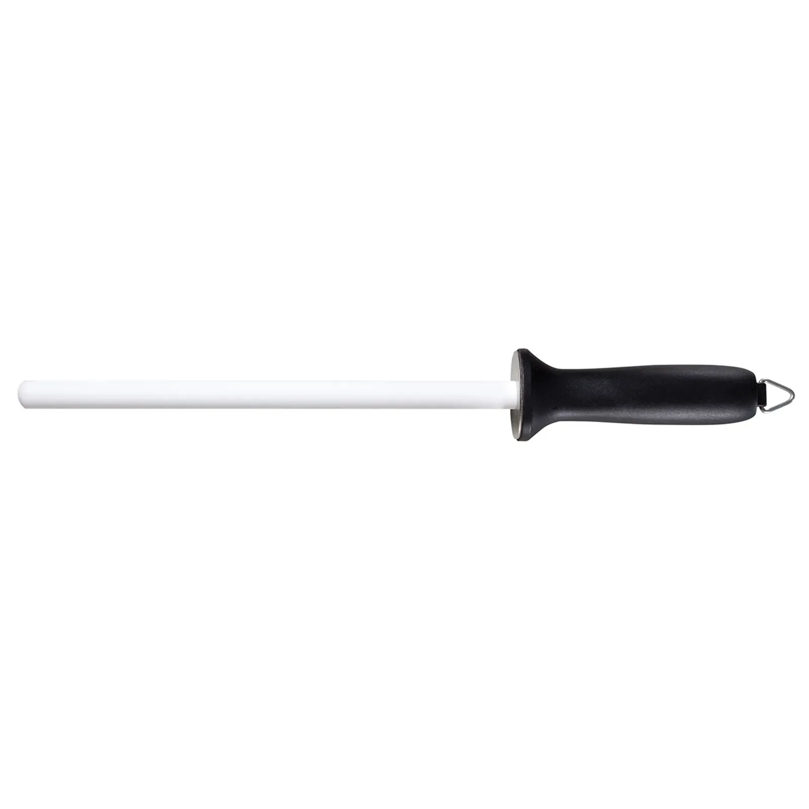 Maximize kitchen productivity with the Mercer Culinary, M14410, Knife, Sharpening Steel. This 10" Ceramic Sharpener is a must-have tool for any commercial restaurant. With its black nylon handle and hanging ring, it is designed for convenience and easy storage. The ceramic sharpener ensures that your knives stay razor-sharp, allowing for precise and efficient cutting. Its durable construction and high-quality materials make it perfect for heavy-duty use in a busy kitchen. Whether you're slicing, dicing, or chopping, this sharpening steel will keep your knives in top condition, ensuring that your chefs can work with precision and speed. Upgrade your kitchen with the Mercer Culinary M14410 and experience the difference it makes in your restaurant's efficiency.