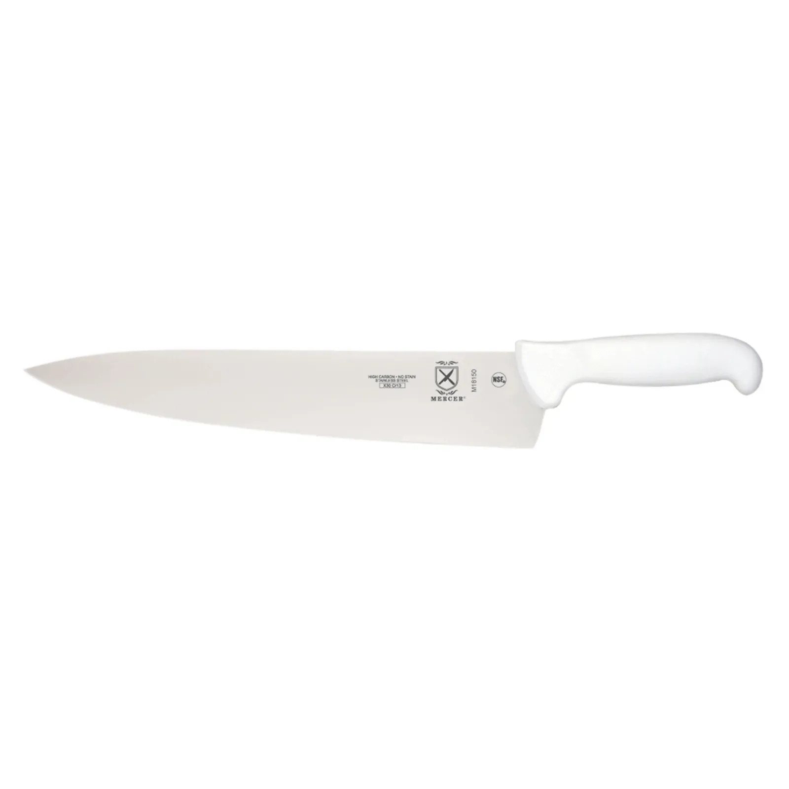 Equip your kitchen for success with the Mercer Culinary, M18150 Chef's Knife. This 12" knife is the ultimate tool for professional chefs in commercial restaurant settings. Made with high carbon, stain-resistant steel, this knife delivers exceptional durability and precision cutting. The ergonomic white handle is designed with textured finger points and a protective finger guard, ensuring comfort and safety during use. With its NSF certification, you can trust that this knife meets the highest standards of quality and hygiene. Whether you're slicing, dicing, or chopping, this knife will effortlessly handle all your culinary tasks. Upgrade your kitchen arsenal with the Mercer Culinary, M18150 Chef's Knife and experience the difference it makes in your restaurant's efficiency and performance.
